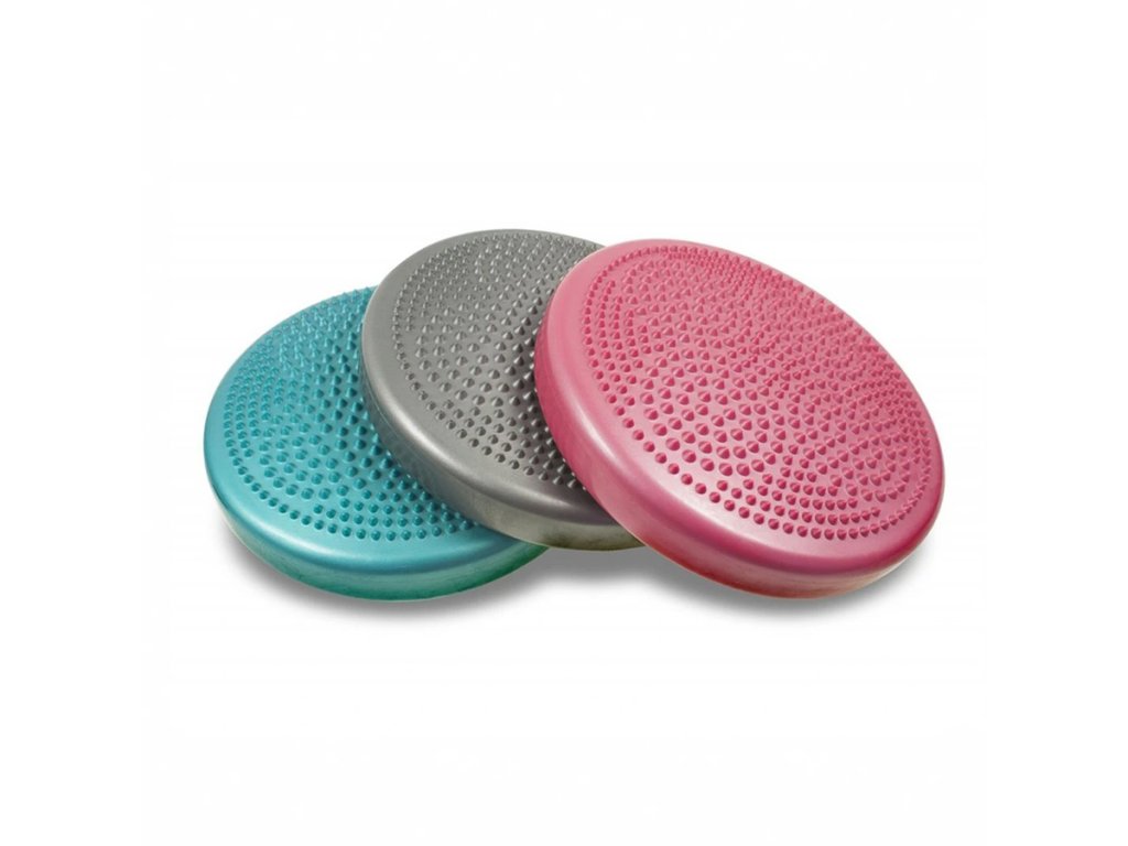 Podložka Senso o průměru 34 cm slouží k posilování bederní páteře, zlepšení rovnováhy a podporu koncentrace. Využívá se jako sedací podložka, nebo jako nestabilní plocha pro balanční cvičení. Při použití na židli si na podložku sedejte v přední části, tak, aby pánev byla nakloněna dopředu. Pro začátek doporučujeme kratší dobu sezení, kterou postupně prodlužujte. Podložka je nafukovací, pomocí jehlového ventilku je možné regulovat množství vzduchu v podložce. Čím víc podložku nafouknete, tím těžší je cvičení, protože rovnováha je obtížnější. Vrchní strana je opatřena bodlinkami.