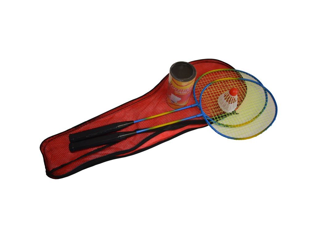 Badmintonový set pro rekreaci a volný čas. Sada obsahuje: 2 x raketa (velikosti hlavy 24 cm, materiál: ocel, rukojeť: dřevěná PVC, výplet: nylon) 3 x košík (materiál: PVC)Doplňkové parametry