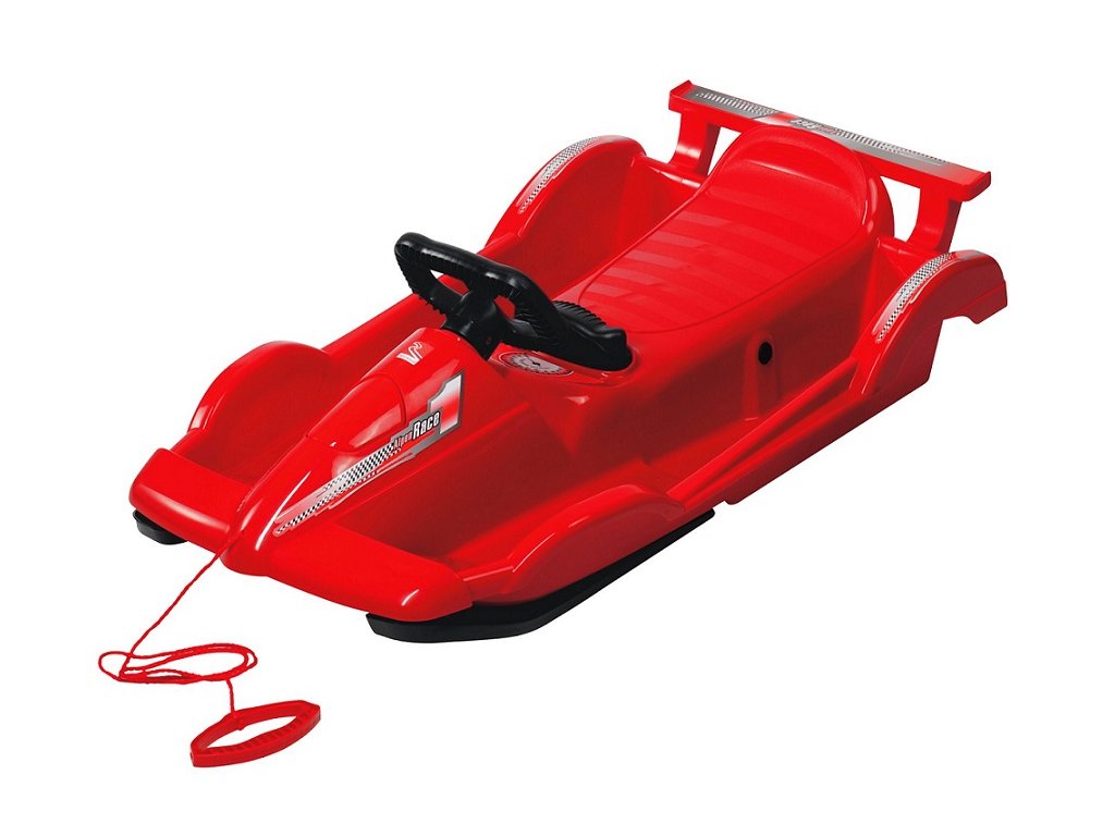 Jedinečný bob RACE značky AlpenGaudi s nápaditým designem formule. Řiditelný model s volantem a dvěma ližinami pro snadné ovládání. - brzdová páka u volantu - tažné lano s rukojetí - vysoce odolný plastový materiál - vyrobeno v EU Maximální nosnost: 50 kg Rozměry: 55 x 100 x 31 cm (š x d x v)Doplňkové parametry