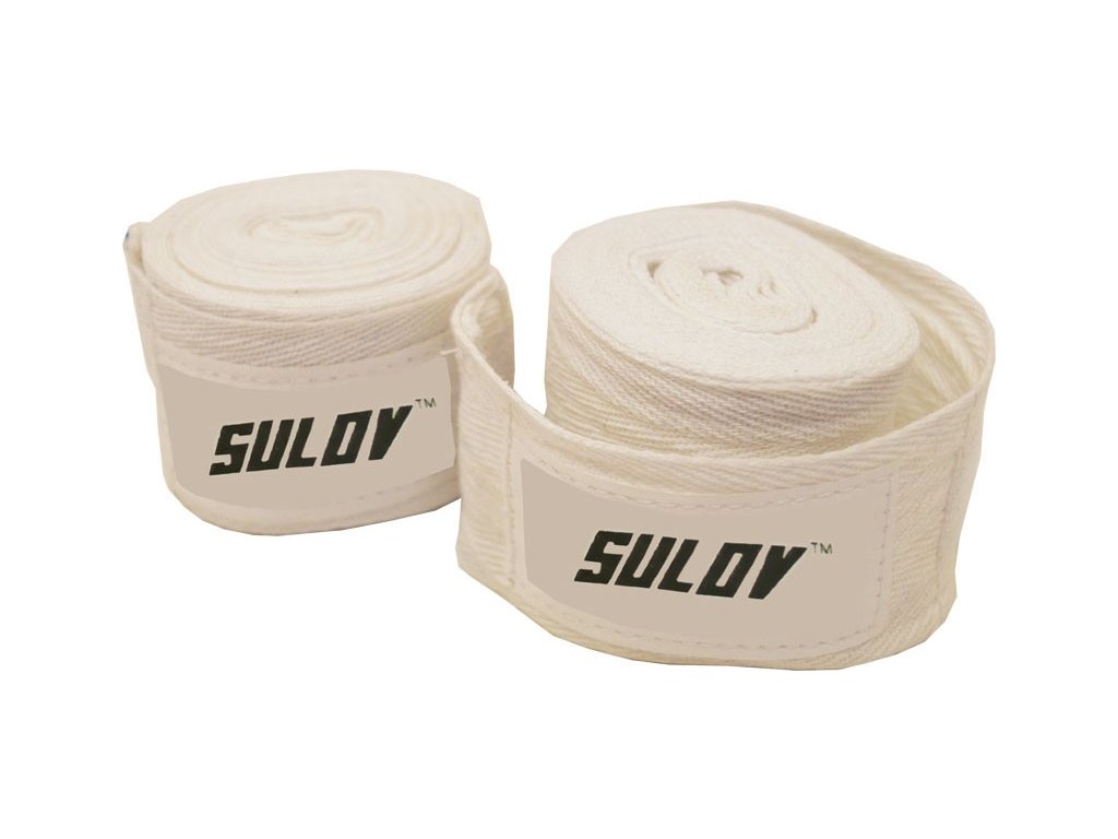 Bavlněné bandáže na ruce značky SULOV. - bandáže jsou vyrobeny ze 100% bavlny - dokonale zpevňují celou oblast ruky a především zápěstí - bandáže obsahují poutko, které se zachytí na palci, a dlouhý suchý zip pro bezpečné zapnutí - vhodné na box, kickbox, thaibox, taebo atd. Bandáže se dodávají v páru Délka: 4 m Materiál: 100% bavlna Barvy: bílá, černá, modrá, červená Balení: 2ksDoplňkové parametry