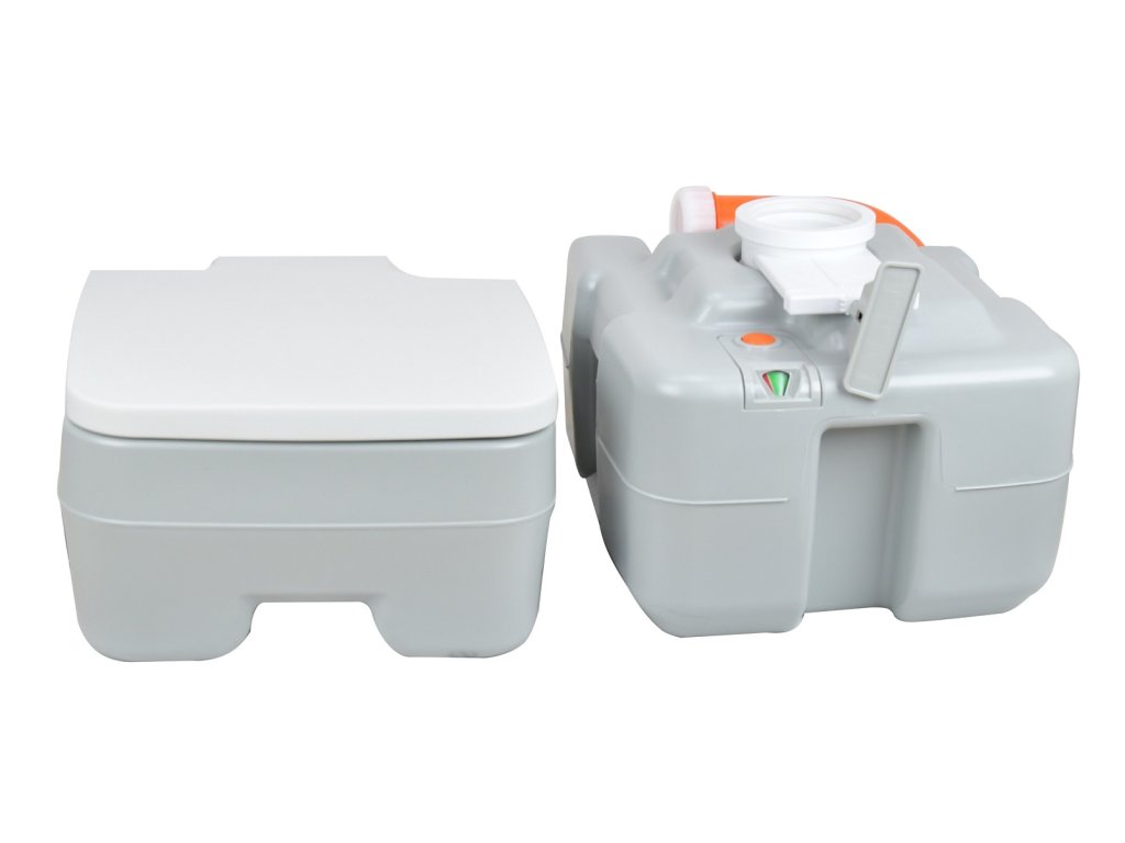 Přenosné WC s kapacitou vodní nádrže 10 l a odpadní nádrže 20 l. - objem nádrže (l): 10 - objem odpadní nádrže (l): 20 - zvedací sedátko s víkem - indikátor množství odpadní vody - vyprazdňovací hubice - není potřeba externí připojení vody - splachování ruční pumpou - chemické WC lze velmi snadno rozdělit na dvě nezávislé nádoby - zásobníky jsou opatřeny držadly pro jednoduchý transport - uzavírání odpadní nádoby pro zamezení nepříjemných pachů - materiál plast - barva šedá - rozměry 42 x 37 x 43,5 cm - nosnost 130 kg - hmotnost 5,1 kg Chemickou toaletu je možné propojit s přenosným umyvadlem značky CATLER, kde lze odpadní vodu vyžít pro splachování toalety. Přenosné umyvadlo CALTER není součástí dodávky!Doplňkové parametry