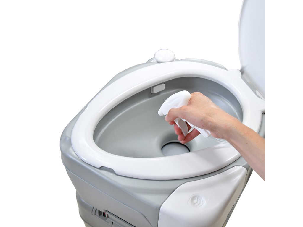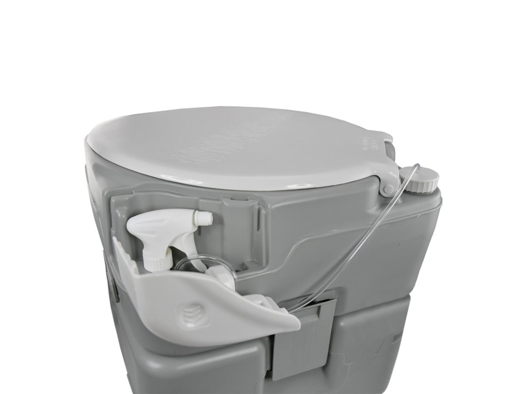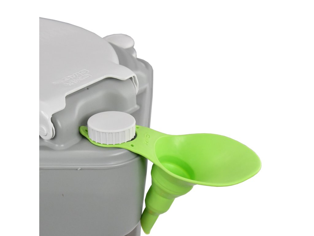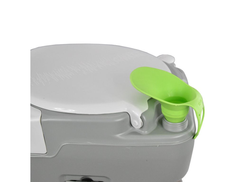 Přenosné WC s kapacitou vodní nádrže 10 l a odpadní nádrže 20 l. - objem nádrže (l): 10 - objem odpadní nádrže (l): 20 - zvedací sedátko s víkem - indikátor množství odpadní vody - není potřeba externí připojení vody - splachování ruční pumpou - chemické WC lze velmi snadno rozdělit na dvě nezávislé nádoby - zásobníky jsou opatřeny držadly pro jednoduchý transport - uzavírání odpadní nádoby pro zamezení nepříjemných pachů - příslušenství (součástí balení): rozprašovací tryska pro dočištění mísy, trychtýř pro snadné plnění nádrže na čistou vodu - materiál plast - barva šedá - rozměry 42 x 37 x 43,5 cm - nosnost 130 kg - hmotnost 6,1 kg Chemickou toaletu je možné propojit s přenosným umyvadlem značky CATLER, kde lze odpadní vodu vyžít pro splachování toalety. Přenosné umyvadlo CALTER není součástí dodávky!Doplňkové parametry