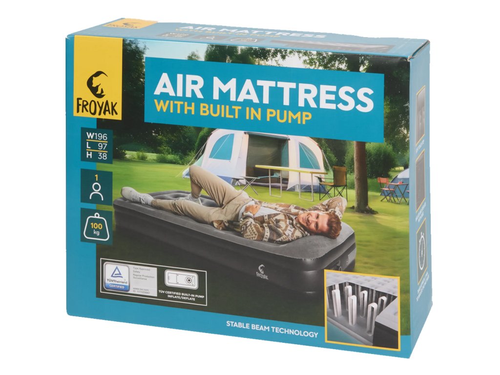 FROYAK Nafukovací postel / matrace pro 1 osobu s vestavěnou pumpou - 196 × 97 × 38 cm