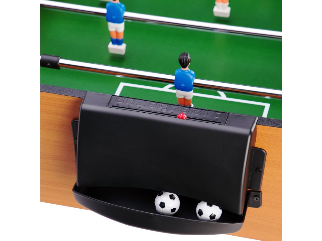 Náš stolní fotbal je synonymem pevnosti a stability. Pevná konstrukce z vysoce kvalitních MDF desek zaručuje, že stůl vydrží mnoho let a že každá hra bude stejně vzrušující jako ta první.