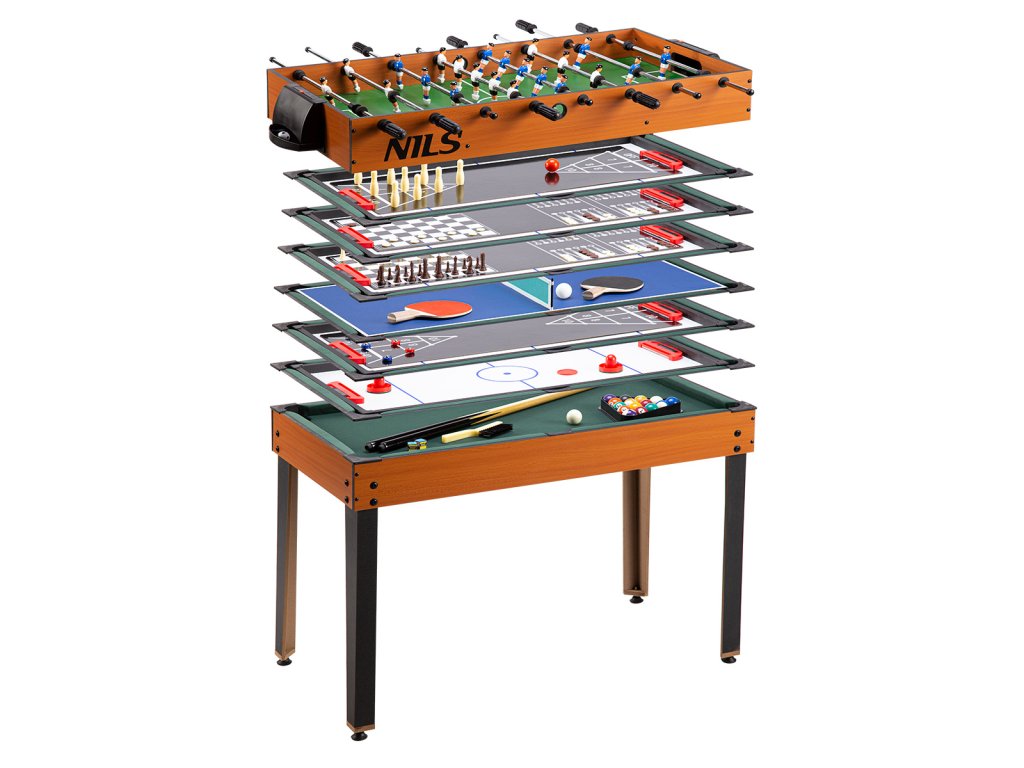 Sada SDM 13v1 je multifunkční herní stůl na společenské hry. Umožňuje hraní až 13 různých her, a přitom nezabírá mnoho místa. Herní desky se skládají na sebe, spolu s veškerým vybavením. Výsledkem je, že vše je uschováno na jednom místě a stůl zabírá tolik místa, jako v případě samostatných herních stolů.