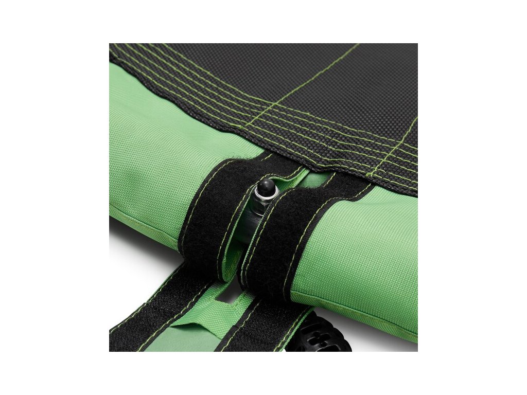 Sedací plocha je vyrobena z kombinace polypropylenu a polyesteru v úpravě 600D Oxford, takže je bezpečná, pohodlná a odolává povětrnostním vlivům. Díky tomu může zábava trvat mnoho hodin. Rám je chráněn speciální pěnou. Lana jsou z velmi odolného polyethylenu. Vše pro maximální bezpečnost, komfort a odolnost vůči dešti a sněhu. To znamená, že není nutné uklízet vybavení, jakmile začne pršet.