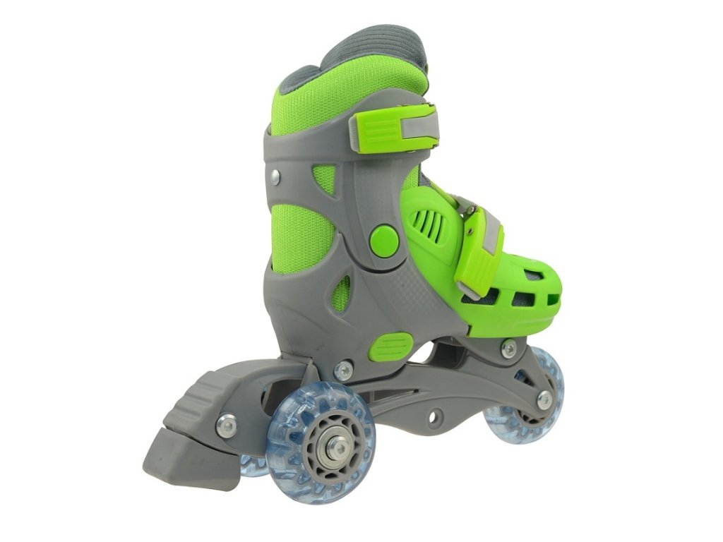 Nastavitelné brusle s měkkým vnitřním polstrováním jsou navrženy pro pohodlné bruslení a vyrobeny tak, aby splňovaly nejmodernější bezpečnostní prvky. Vnější bota a podvozek jsou vyrobeny z kvalitních plastových materiálů, které zaručují dostatečné zpevnění kotníků začínajících bruslařů. Kolečka: PVC 64x24mm Ložiska: 608-Z Velikost: XS(27-30)-3 kolečka, S(31-34)-4 kolečka.Doplňkové parametry