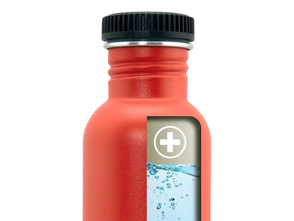 Moderní jednoplášťová láhev LAKEN z nerezové oceli 18/8, která zajišťuje naprostou bezpečnost nápoje.