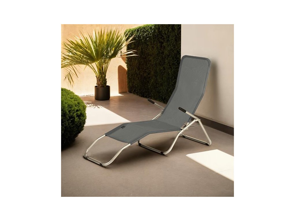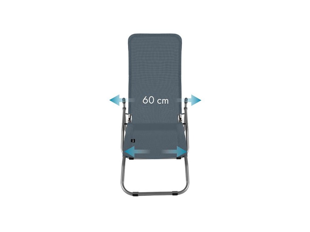 Jedná se o univerzální lehátko, které se osvědčí za každých podmínek. Za jeho stabilitu ručí ocelové profily o průměru 24 mm. Díky pevné konstrukci a materiálu textilen (polyesterové vlákno potažené vinylem), který je velmi odolný, je maximální hosnost lehátka až 100 kg. Součástí jsou také protiskluzové nožky, které zabraňují posouvání.