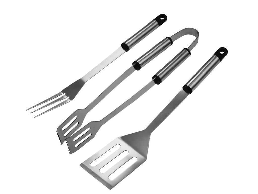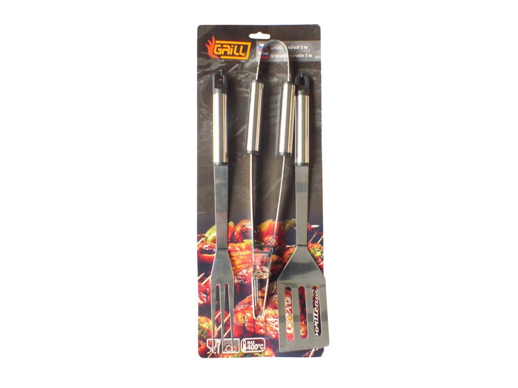 Grilovací nářadí 3 ks - sada obsahuje: vidlice, kleště, obracečka - rozměry: vidlice 35 cm, kleště 34 cm, obracečka 34 cm - materiál: nerezová ocelDoplňkové parametry