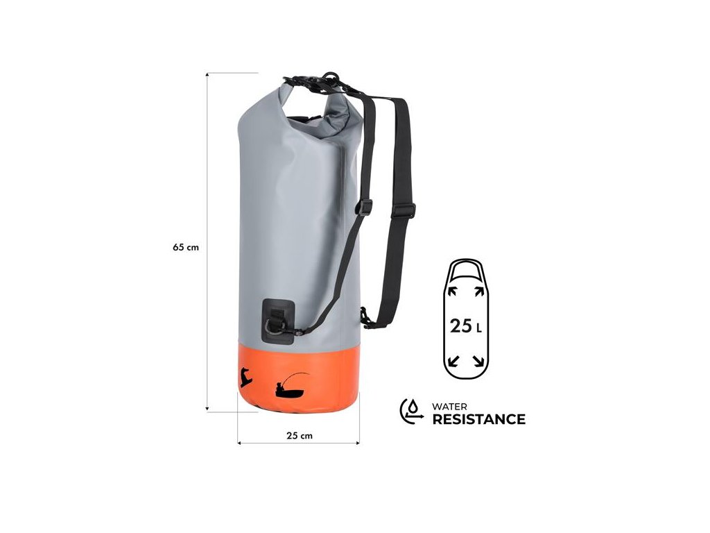Vak je vyroben z odolné směsi PVC 500D a polyesteru, která chrání obsah před vlhkostí, blátem i nepříznivými povětrnostními podmínkami. Je to ideální volba, pokud chcete mít jistotu, že vaše oblečení, elektronika nebo dokumenty zůstanou suché i v extrémních situacích.