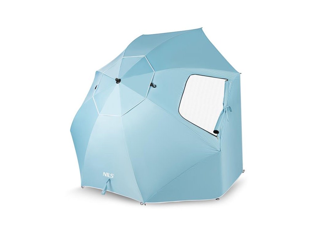 Model NC17114 je mimořádně funkční slunečník značky NILS Camp, který díky své konstrukci může sloužit také jako paraván. Je ideálním řešením pro ty, kteří při odpočinku hledají větší ochranu a soukromí. Díky bočním stěnám a velké užitné ploše slunečník účinně chrání před sluncem, větrem a pískem a vytváří útulné místo k odpočinku na pláži, v zahradě nebo na kempu.
