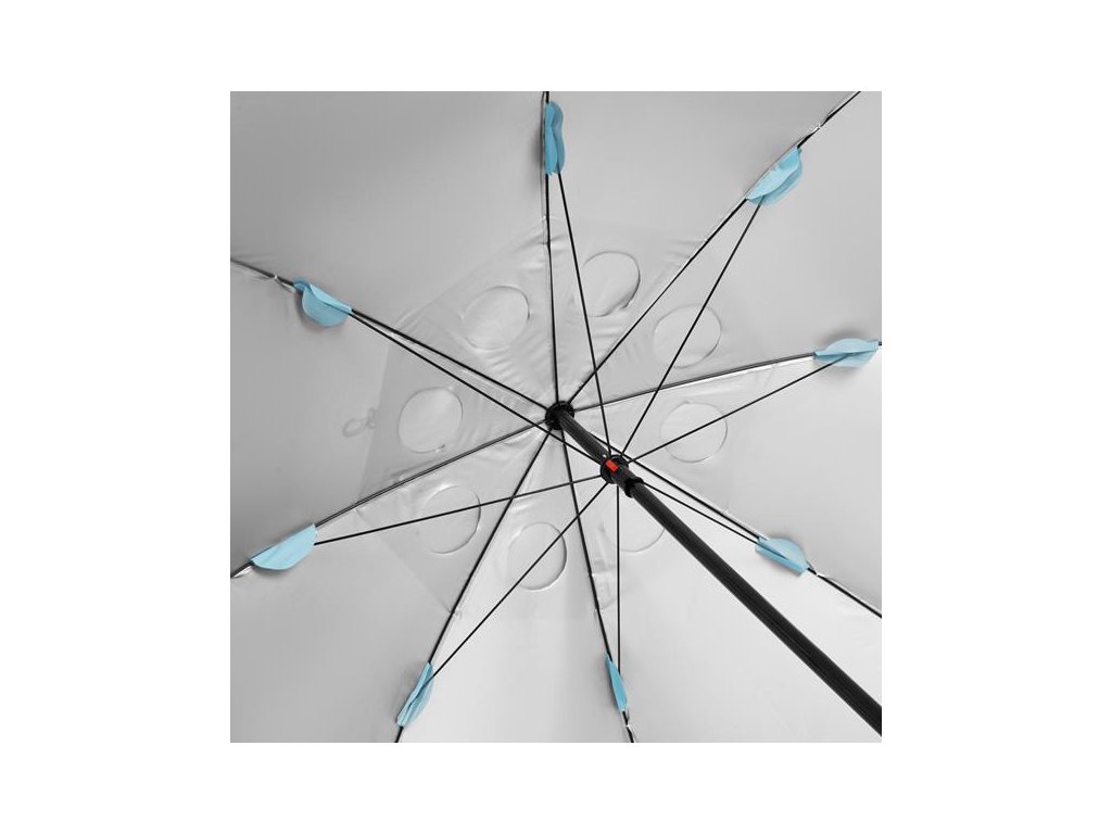 Slunečník je vybaven odnímatelnou podlahou o rozměrech 250 x 140 cm, která zajišťuje další komfort při používání. Ideálně izoluje od písku nebo vlhkého povrchu a vytváří čistý a bezpečný prostor pro odpočinek, hraní dětí nebo uložení věcí. V případě potřeby lze podlahu snadno odpojit – slunečník se pak stane klasickým stínidlem.