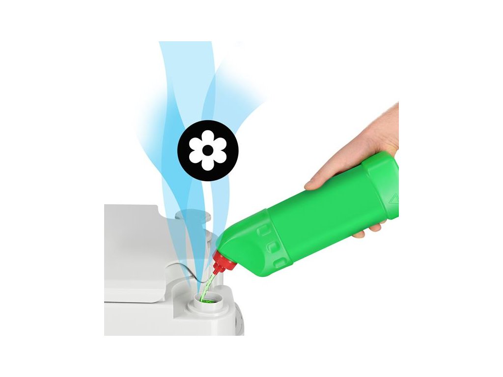 Toaleta je vyrobena z odolného a vlhkuvzdorného PP (polypropylenu). Použití těsného šoupátkového ventilu účinně izoluje nečistoty a zabraňuje úniku pachů. Splachovací systém je založen na jednoduchém a spolehlivém ručně poháněném mechanismu, který umožňuje používat toaletu bez přístupu k elektřině nebo vodovodním instalacím. Široké prkýnko a ergonomická výška zajišťují pohodlí pro všechny uživatele – bez ohledu na věk.