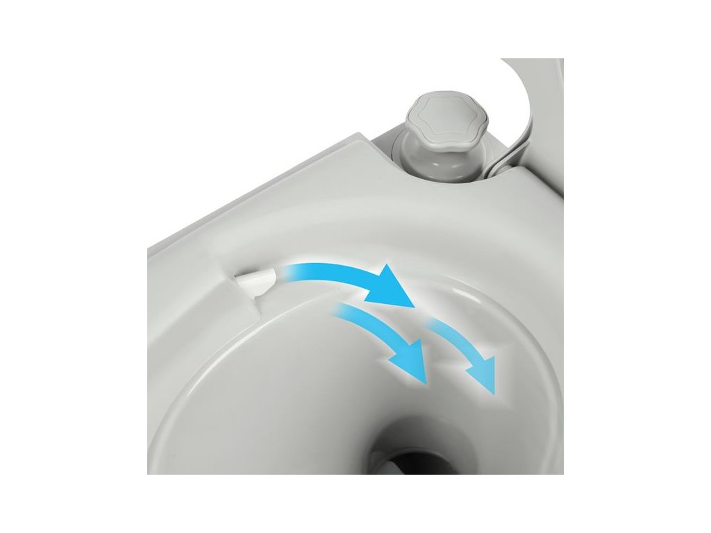 Model NC0023 je vybaven dvěma nezávislými nádržemi: ??na čistou vodu (20 litrů) a na odpadní vodu (24 litrů). Díky tomu jej lze používat několik dní bez nutnosti častého vyprazdňování nebo doplňování nádrží. Další výhodou je praktický ukazatel hladiny naplnění odpadní nádrže, který informuje o jejím naplnění. Tato funkce výrazně zvyšuje komfort používání a zabraňuje nepříjemným překvapením.