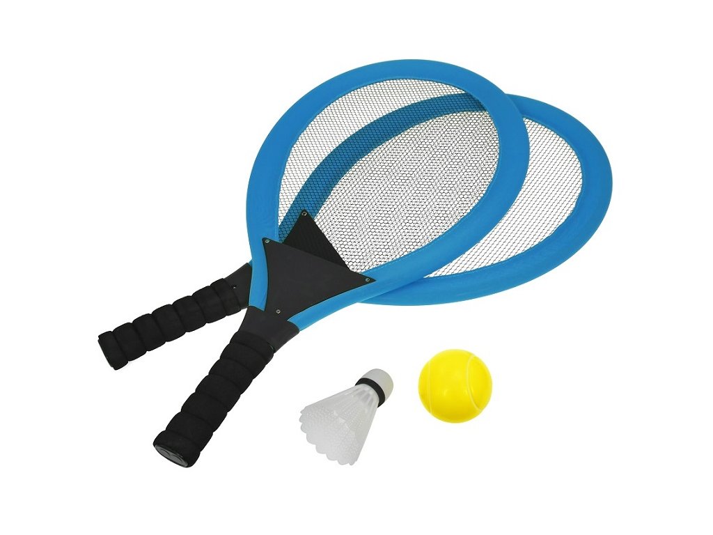 Set na plážový tenis Outdoorová raketa s měkkým výpletem, vhodná ke hře s míčkem nebo košíčkem. Sada obsahuje: 2 rakety, 1 míček, 1 košíček.Doplňkové parametry