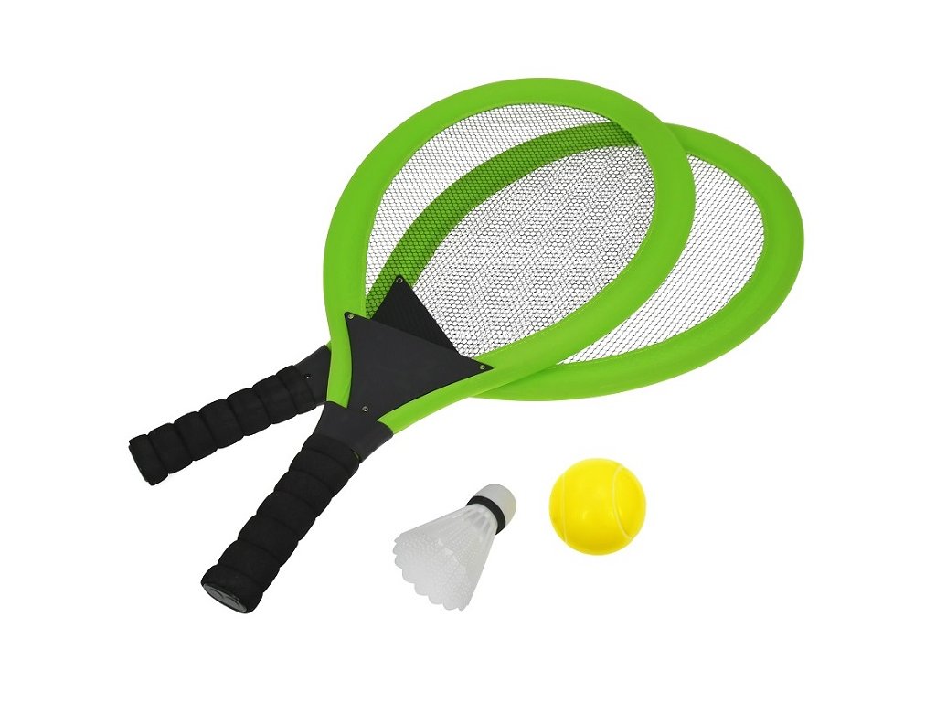 Set na plážový tenis Outdoorová raketa s měkkým výpletem, vhodná ke hře s míčkem nebo košíčkem. Sada obsahuje: 2 rakety, 1 míček, 1 košíček.Doplňkové parametry