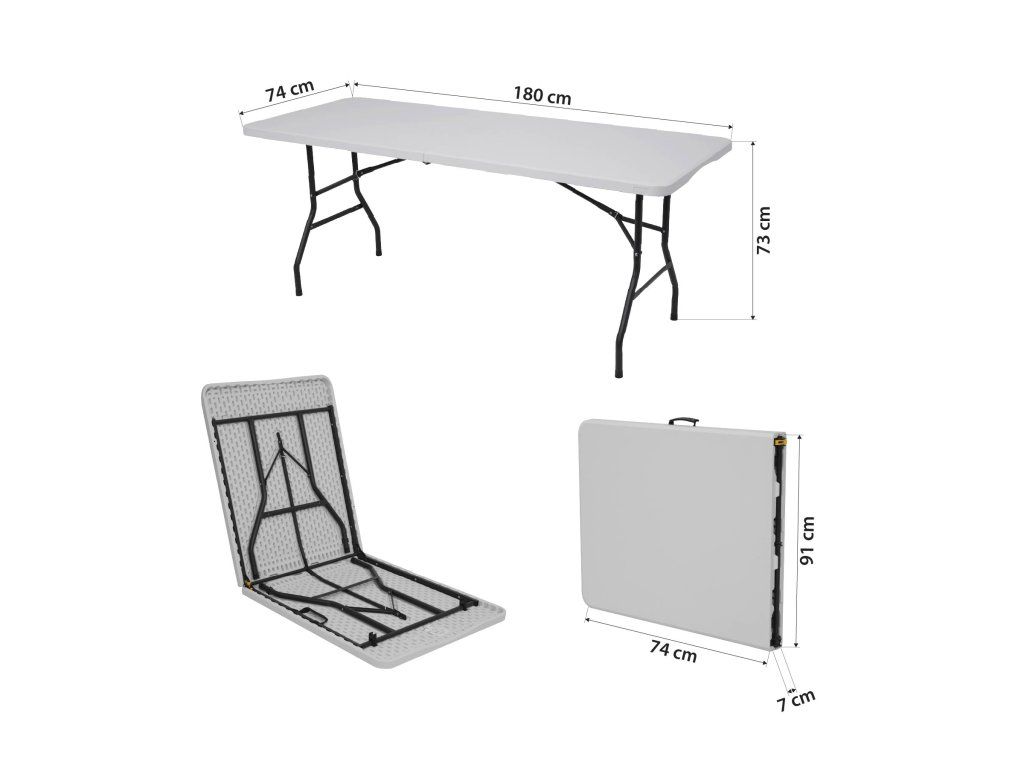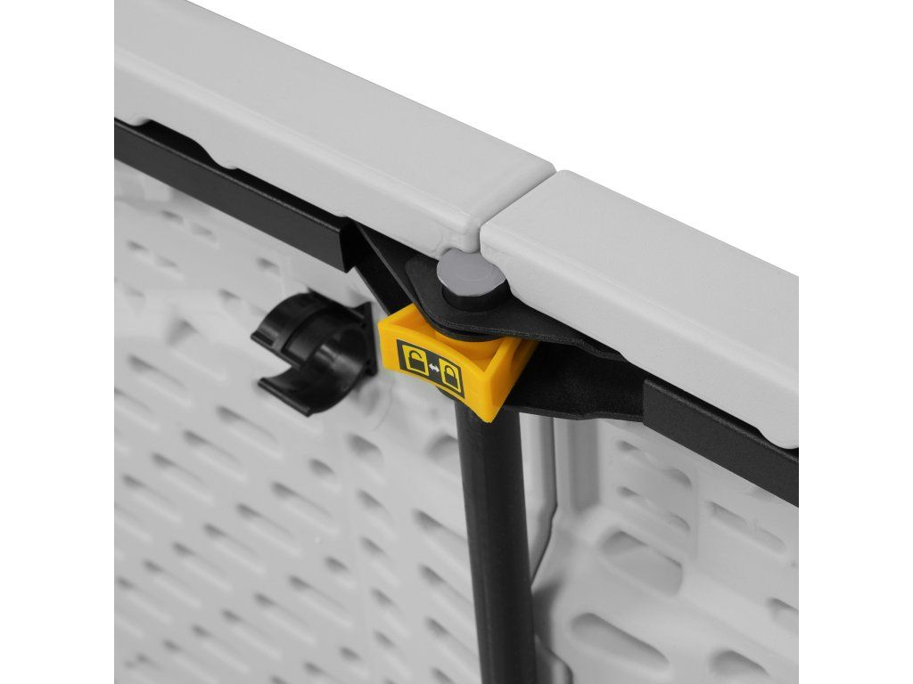 Jednou z hlavních předností modelu NC1618 je jeho robustní a promyšlená konstrukce. Horní deska je vyrobena z odolného PVC s hladkým povrchem, který nejen dobře vypadá, ale je také odolný proti skvrnám, snadno se čistí a odolává povětrnostním vlivům. Zesílený ocelový rám zajišťuje stabilitu stolu i při větším zatížení. Maximální nosnost až 50 kg umožňuje stůl bezpečně používat při servírování jídla, ukládání nádobí nebo rozestavování vybavení na akcích.