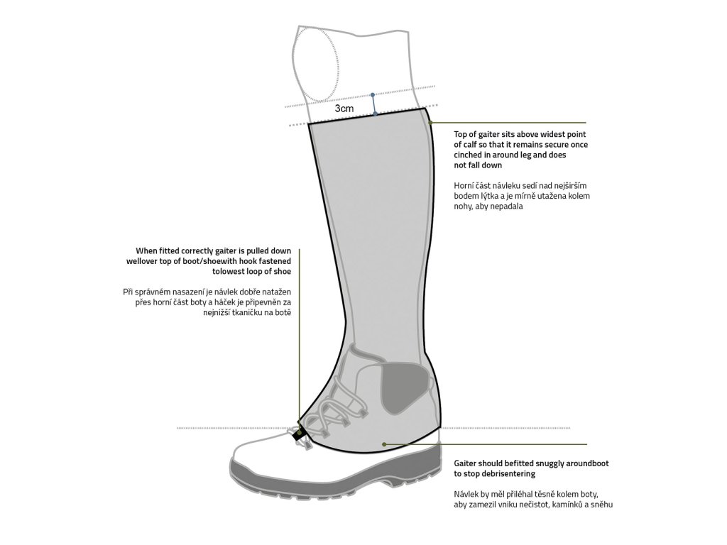 Návleky Trekmates Torridon z třívrstvého materiálu a s membránou DRY jsou voděodolné, prodyšné a chrání před deštěm, sněhem, kameny a špínou. Kotníky a přední pás jsou zesílené Cordurou, což zvyšuje jejich odolnost a trvanlivost. Horní část návleku je vyrobena z odolného nylonu Taslan. Snadná manipulace - rozepínání je zepředu na zip + suchý zip. Stahování nahoře. Pevný pásek pod botu. Membrána DRY je voděodolná a prodyšná membrána od firmy Hipora, která vyniká výbornou odolností proti vodě a přitom si zachovává dobrou prodyšnost.