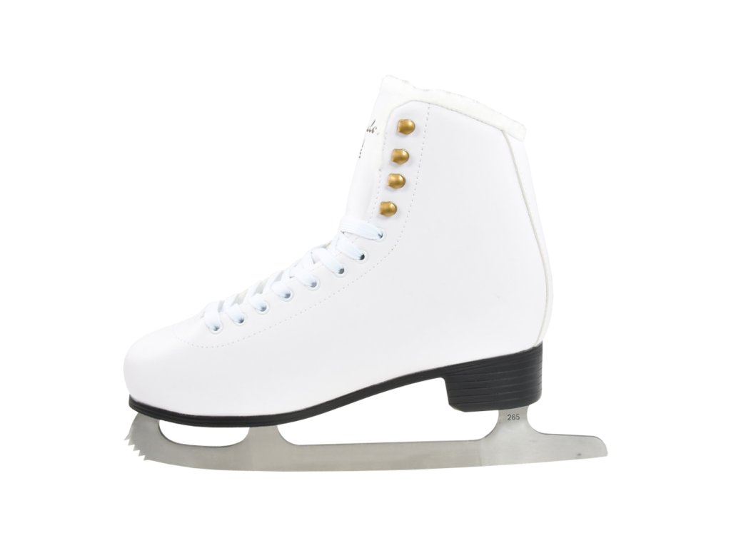 Velmi pohodlná dámská brusle se zlatavým zdobením. - vnější materiál: cold resistant PVC (syntetická kůže) - vnitřní materiál: kožíšek s delším chlupem SOFT FUR - thermo-anatomická bandáž - nerezový nůž se zoubky Určení: rekreační až výkonnostní sport Velikosti: 36-42