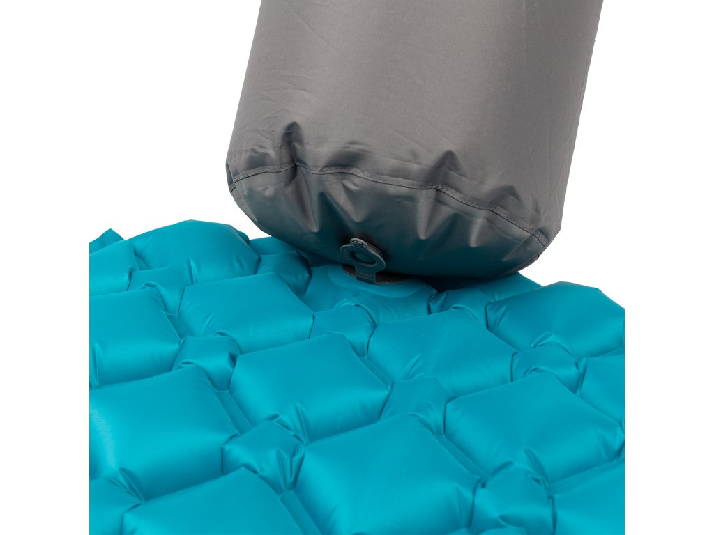 Vak může zároveň sloužit jako přepravní obal na karimatku a další věci. Výstup pro nafukování nemá uzávěr, proto není vak úplně vodotěsný.